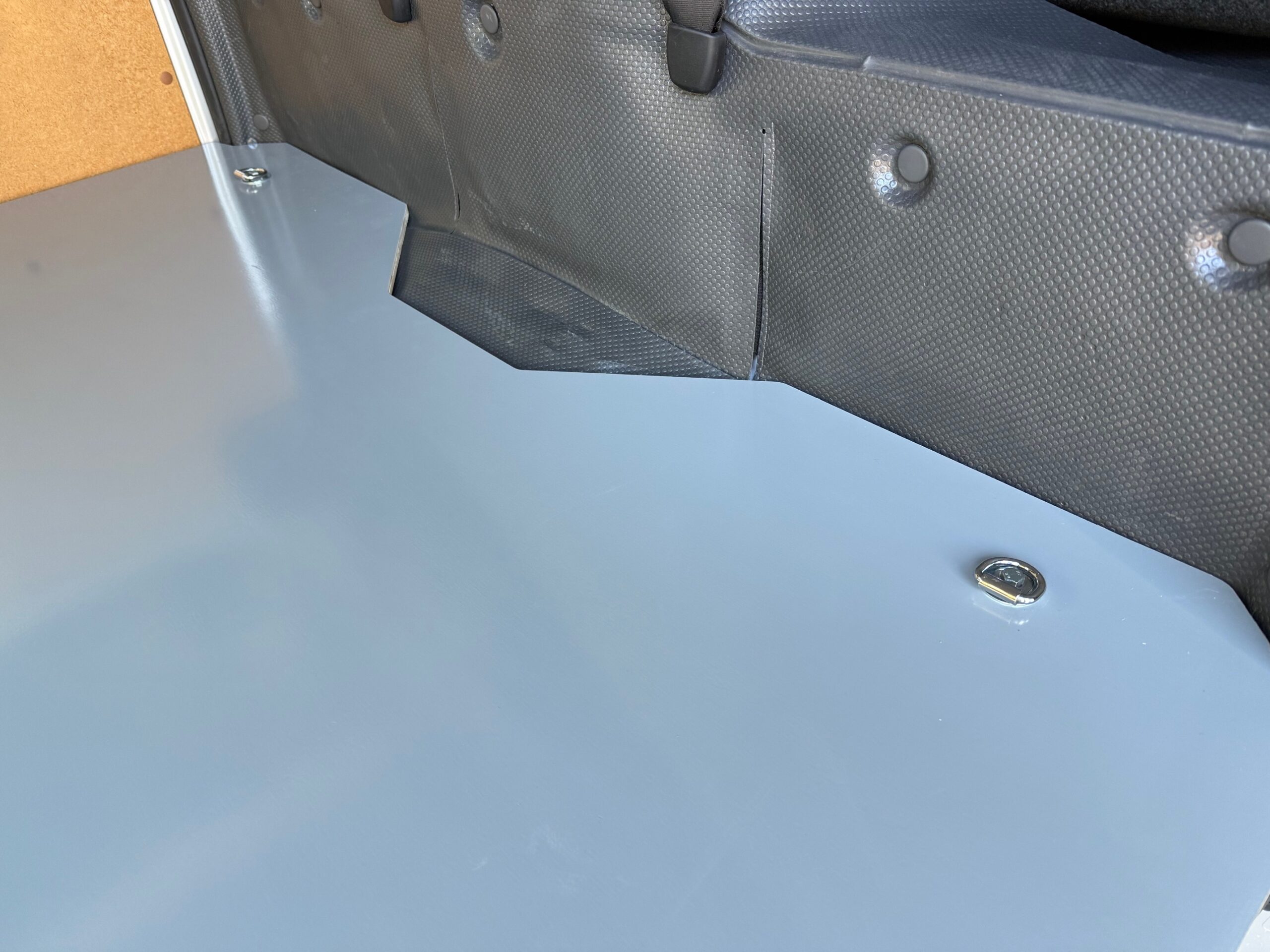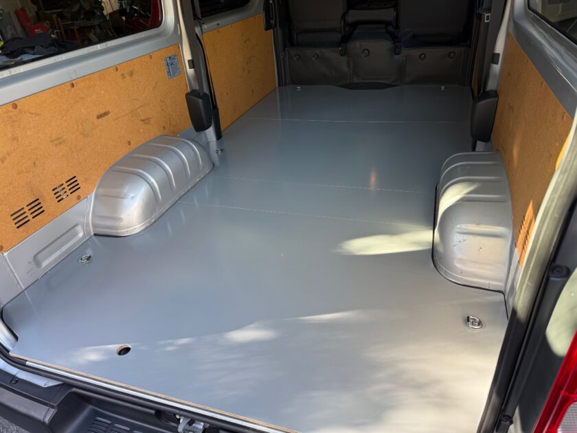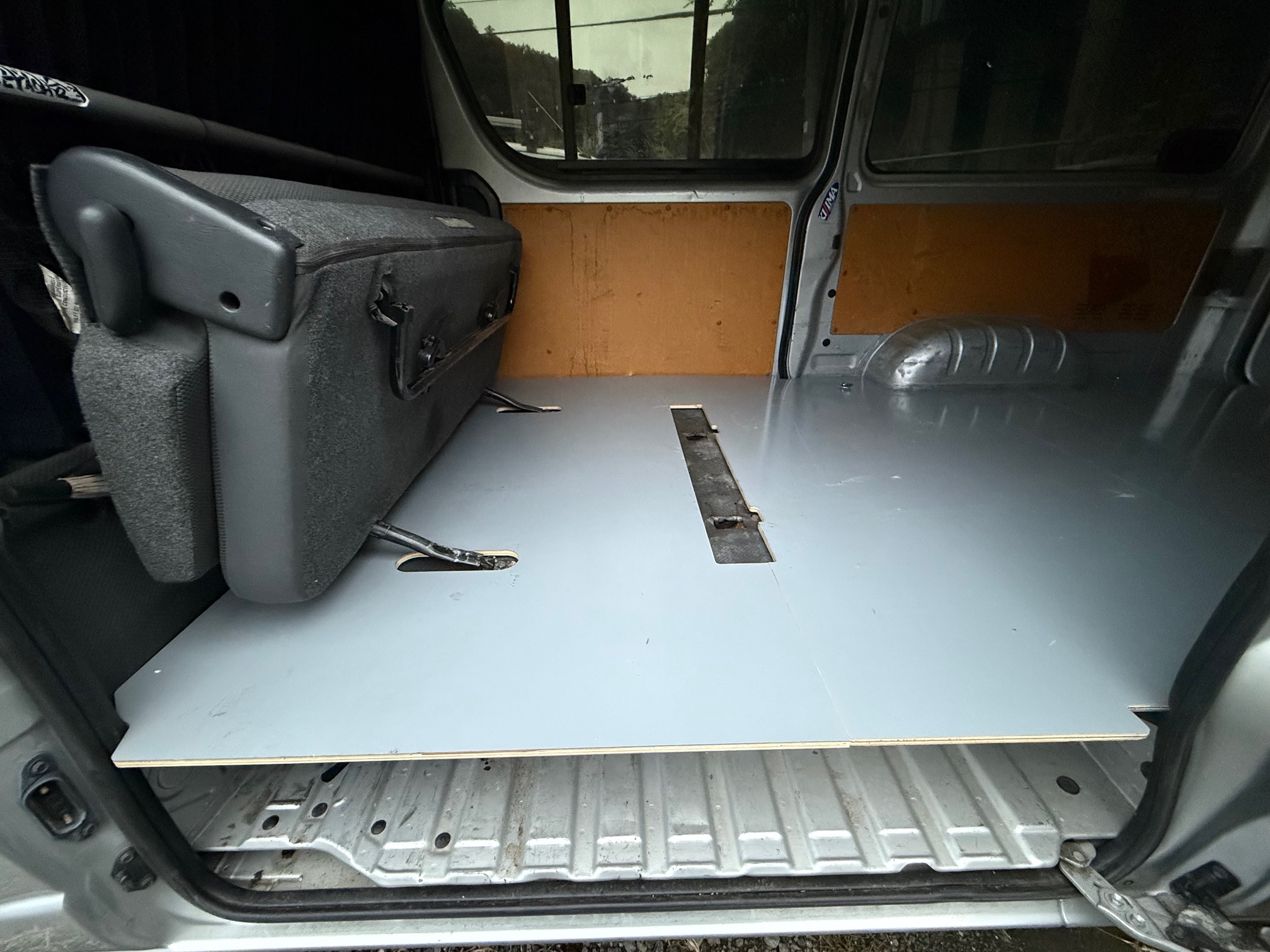 お客様からの要望で床張りを行っています、リアの部分のみも後ろから前まで張ることも可能です。フックも6個で安全性も十分ありますのでご安心ください。